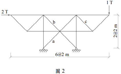 【已刪除】二、試解圖 2 桁架中,a、b、c 各桿件之力。(25 分)