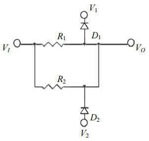≧1 mA 即表示二極體完全導通),請計 算並畫出此電路之輸入電壓和輸出電壓的關係(即 V