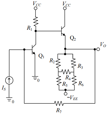 【已刪除】四、如圖所示電路,此電路為何種反饋電路型態(feedback topology)之電路,同時請說 明此種電路,在沒有反饋效應及加上反饋效應後其增益、輸入阻抗及輸出阻抗之變 化為何?請以相關等式說明。(20 分)