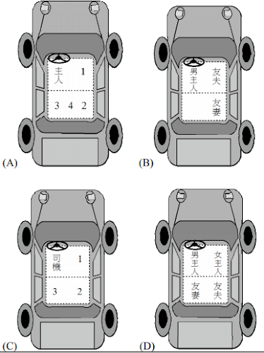 6. 關於乘車禮儀,下列搭乘汽車座次的安排,何者錯誤?