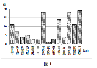1. 圖 1 為經濟部所統計的臺灣各縣市溫泉數 量圖。在臺灣四大區域中,哪個區域的溫 泉數量最多?