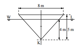 【已刪除】四、假設有一橫剖面如下圖的三角稜柱船舶,其船長為 32 m,最上方之船寬為 8 m,船 深為 5 m,船舶 KG 值為 3.7 m。當艏艉吃水皆為 4 m 時,試求此船舶的初定傾高 GM 為何?(20 分)