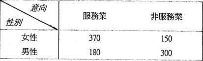 試在a = 0.05的顯著水準下,檢定大學生對將來從事服務業與否的就業意向,是否存在性別差異。