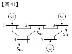 41.某電力系統之單線圖如【圖 41】所示,若匯流排 1 為搖擺匯流排(swing bus or slack bus)則匯流排 3 為何種類型的匯流排?