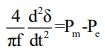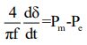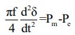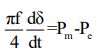 49.某三相同步發電機的頻率為 f、功率角為、輸入功率之標么值為、輸出功率之標么值為,若發電機的標么慣量性常數(per unit inertia constant) H = 4 秒,則其搖擺方程式(swing equation)為何? (A)(B) (C) (D)