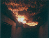 【已刪除】二、當你率隊進入已起火的住宅執行搶救勤務,深入該住宅發現火場已有大量煙層蓄積 天花板處,且中性帶不斷降低及出現大面積片狀火焰(如下圖),請你研判此為何 種現象?可能為發生何種現象的前兆?此時你應採取何種措施進行應變處置?(20 分)