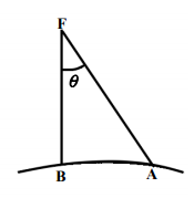 【已刪除】五、示意如圖,假設地球為半徑 6370 km 之理想球,距地表點 B 高度 890 km 之人造衛 星 F,以傾角θ=30°觀測點 A。請計算:於 A 處,F 之仰角為若干?(20 分)