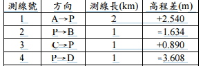 【已刪除】二、示意如圖,A, B, C, D 四已知點之高程及其中誤差分別為: H