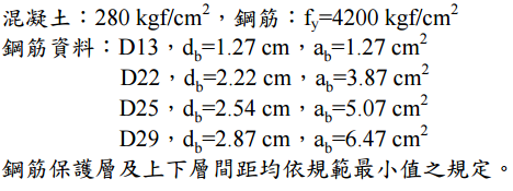 本試題原則依中國土木水利工程學會所編撰「混凝土工程設計規範及解說」(土木 401-96) 及後續版本規範規定,若採用其他規範版本作答,請務必「註明」所依據之版本。 本試題之材料強度及規格如下: