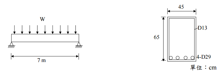 【已刪除】二、圖示鋼筋混凝土梁承受均佈靜載重 W