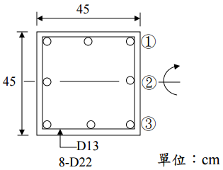 及斷面曲率(curvature)(請依圖示彎矩作用方向及鋼筋排列順序計算鋼筋之拉 (壓)力)。(25 分)