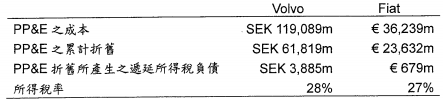 【已刪除】2.下列的資料係取自X1年Volvo及Fiat兩家汽車公司財務報表上有關不動產、廠房及設備(PP&E) 的資訊: