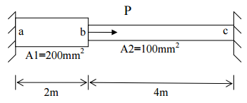 【已刪除】一、如圖所示桿件由兩不同斷面桿件組成,兩端固定,在相連點 b 受軸向拉力 P=50 kN 作用。求各桿件應力與施力點 b 點位移。E=200 GPa。(25 分)