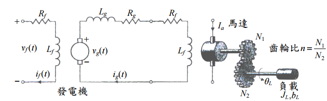 【已刪除】一、如圖所示為一機電開回路控制系統。發電機,於等速度下驅動,供應場電壓給馬達。 馬達之慣性矩 J