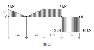 【已刪除】二、一簡支梁的剪力圖如圖二所示,求該梁的載重並畫出彎矩圖,假設無偶矩作用於該 梁上。 (25 分)
