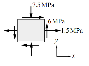 (A) 最大主應力為7.5MPa (B) 最小主應力為 - 10.5MPa (C) 主平面角度為 30° 及 120° (D) 在最大剪力之面上,無任何正交應力( normal stress)