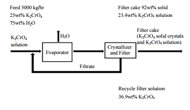 ,蒸發部分的水後,進入過濾器進行過濾,濾餅固體是 K2CrO4 結晶和 23.4wt% K