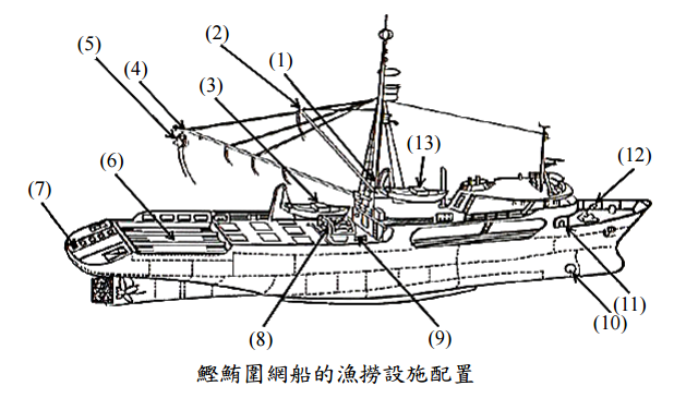 【已刪除】二、請試述鰹鮪圍網船主要漁撈設施配備及標識出其主要漁撈機械配置情形。(20 分)