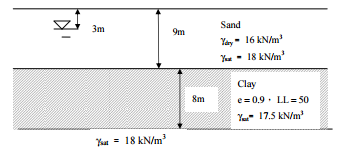 【已刪除】四、一地層如下圖所示,該處地層之孔隙水壓呈靜水壓分布,地下水位面位於地表下 3 m 處。該正常壓密黏土,γ