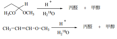 【已刪除】二、1,1-二甲氧基丙烷和 1-甲氧基丙-1-烯在酸性水溶液都會水解成為丙醛和甲醇,若改 為同位素 H
