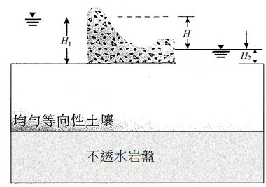 【已刪除】一、試繪製下圖所示混凝土壩下方均勻等向性土壤中之流線網(Flow Net)。(25 分)