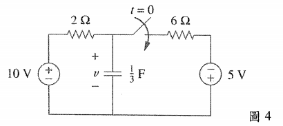 【已刪除】4. (20%)考慮圖4的電路,求電壓v(t) t>0 °