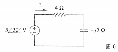 【已刪除】6.(15%)考慮圖6的交流電路,求4 Ω電阻所消耗的平均功率。