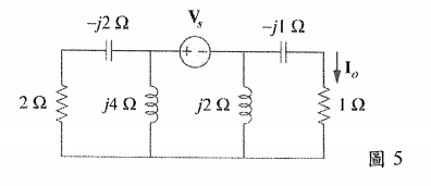 【已刪除】5.(15%)考慮圖5的交流電路,若Io,=2∠0° A,求