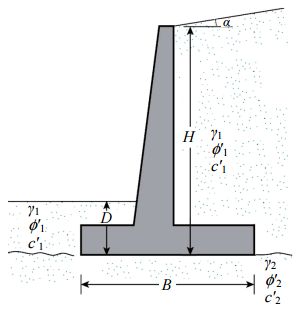 【已刪除】⑵如下圖所示之擋土牆,試繪出在進行擋土牆穩定分析時,作用在擋土牆上之所有 分布力、繪圖示出鋼筋應放置之位置及說明在進行擋土牆之穩定分析時,應檢核 那些破壞機制?並敘述其分析方法。(25 分)