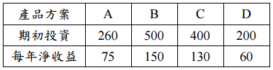 請以現值法決定最佳投資組合。(20 分)