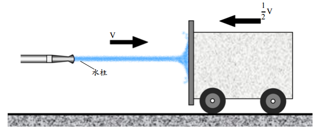 【已刪除】三、如圖所示,一直立平板以(V/2)的水平速度朝向水平水柱移動。水柱流速 V = 12.0 m/s, 其斷面積為 0.010 m