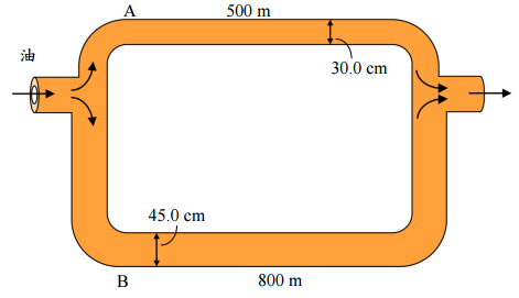 【已刪除】五、如圖所示,油經由並聯兩管向右流動。油之比重為 0.80,流量為 4.00 m