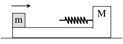 【已刪除】5、質量爲 M 的 L 型木塊靜止在光滑的水平地面上,其 左端有一質量爲 m 的鐵塊,並給 m 一個水平向右 60焦耳的初動能,使 m 與木塊另一端的固定彈簧發生碰撞,撞後返回恰好又停在木塊左端,已知 m、M 間有均勻的動摩擦係數,M = 2m,求最大彈簧位能 =?焦耳