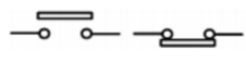 如左圖符號表示(A)單式暫時接觸型按鈕(B)雙式暫時接觸型按鈕(C)單式永久接觸型按鈕(D)雙式永 久接觸型按鈕。