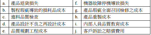 1 下列何者屬於外部失敗成本?