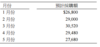 9 甲公司 1 月份至 5 月份之採購預算資料如下: