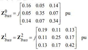 41.一個三母線電力系統的零、正與負相序母線阻抗矩陣為,請問直接線對線故 障發生在母線 2 之標么故障電流為何?(四捨五入至小數點以下第二位) (A) 1.73 pu (B) 3.46 pu (C) 5.19 pu (D) 6.92 pu