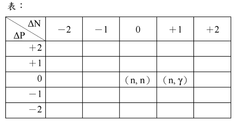 【已刪除】九、請於試卷繪出下表,並將下列核反應塡入適當空格內:(10 分)