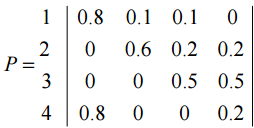 【已刪除】四、一生產系統其生產狀態(States)可區分為四種:(1,2,3,4),其中狀態(1,2,3) 可歸類為正常(Up, in control),生產之成品為良品,狀態(4)可歸類為不正常或故 障(Down, out of control),生產之成品為不良品,其馬可夫鏈機率轉移矩陣如下: