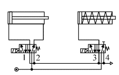 3. 下圖為一個二連座之電磁閥組控制一支單動氣壓缸及一支雙動氣壓缸,應在何處排氣口加入一個止回閥以防 止單動缸誤動作?
