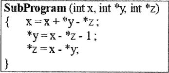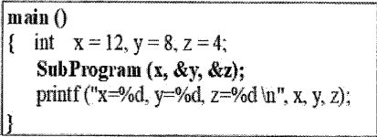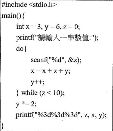 28.以下為C語言之主程式呼叫副程式,請呈現printf敘述所顯示x y z的結果為?
