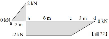 22.【圖 22】為一樑受力後之剪力圖,請問下列敘述何者正確?