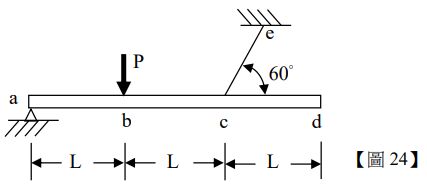24.如【圖 24】所示,一端簡支之剛性樑(Rigid Beam)被一勁度為 k 之彈性繩拉住,現於三分之一跨距處施加一集中力 P, 不計樑自重,下列敘述何者正確?