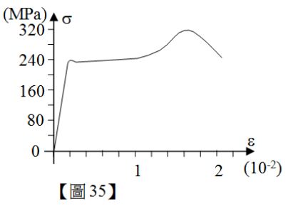 35.如【圖 35】所示,為某金屬之應力應變曲線,下列敘述何者最不適當?
