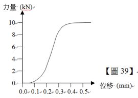 39.一根截面積為 A=60 mm2,標稱長度為 L=150 mm 的抗拉試棒,試驗所得之力與位移關係曲線如【圖 39】,請問該試棒之彈性係數 E 最接近下列何者?