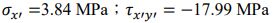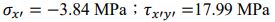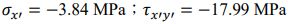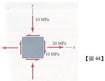44.某一材料元素(點)的平面應力(plane stress)狀態如【圖 44】所示。請問當考慮此元素逆時針旋轉 30°度時(i.e., x,y 軸逆時針旋轉 30成為 x',y'軸),請問旋轉後元素(點)的正向應力及剪應力分別為何?