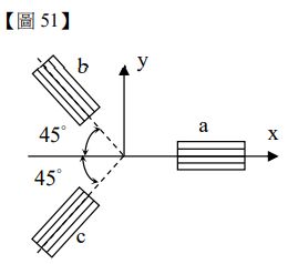 51.三應變規(Strain Gauges)布置如【圖 51】a、b、c 所標示,其應變讀值分別為 ,則平面內剪應變 最接近下列何者?