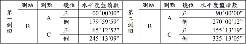 29. 經緯儀觀測水平角∠ABC 兩測回如下表,其 平均水平角 為何?