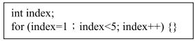 7. 下列程式片段執行完,index 之值為何?(A) 5 (B) 4 (C) 3 (D) 1