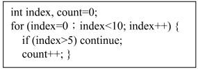 8. 下列程式片段執行完,count 之值為何? (A) 1 (B) 4 (C) 5 (D) 6